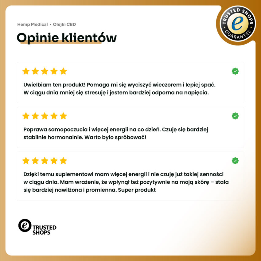 Najwyższej jakości “Złoty” olej, dodatkowo przebadany jest w laboratoriach.